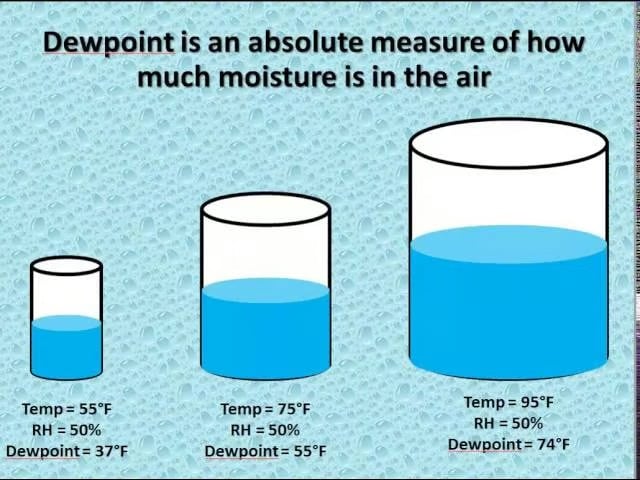 To understand humidity and what it means. The dew point temperature is the absolute measure of the amount of moisture in the air. If the air temperature falls to the dew point temperature, the atmosphere becomes saturated and fog or dew can form.