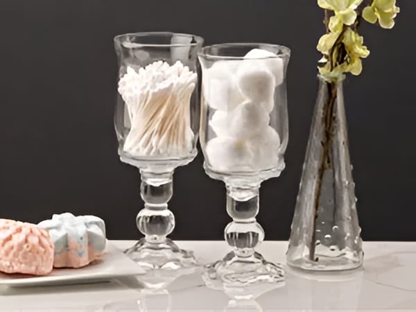 Apothecary jars are beautiful but pricey. You can make your own by gluing a jar or vase to the top of a candleholder, and you’ve got instant storage for small items like cotton balls or makeup brushes. Paint the candleholder in a fun accent color to really make a statement piece.