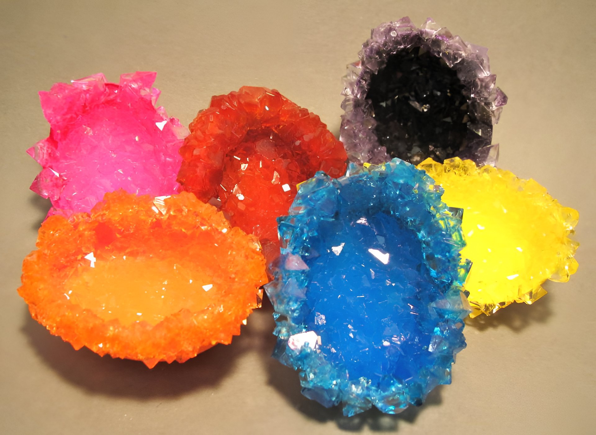 Tip: Liquid food coloring can also be used to dye the geode 30 to 40 drops will adequately saturate the solution.
